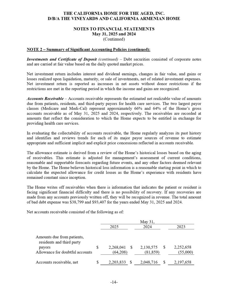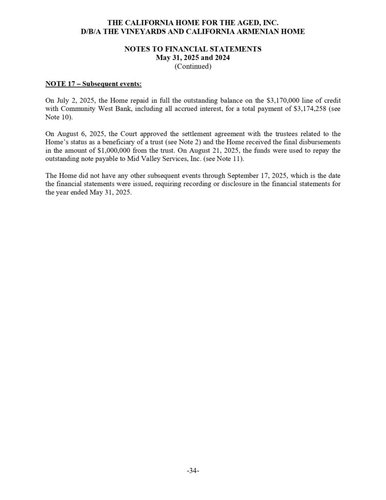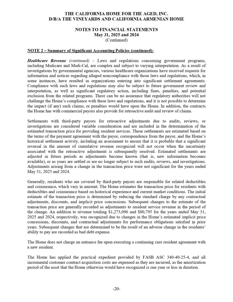 Audited Reports of The California Home for the Aged, Inc. DBA