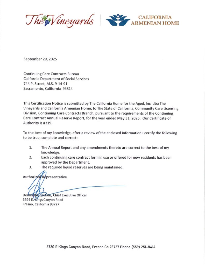 View our Independent Auditor’s Reports and State of California Continuing Care Reports here.